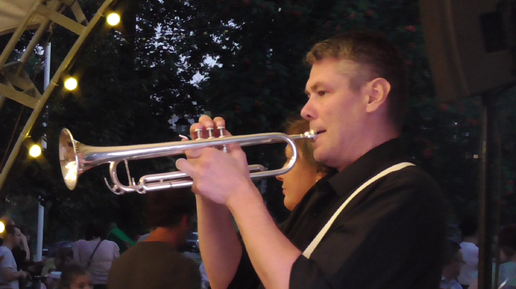 Трубач и певица на фестивале. Фестиваль цветов: Стрелка 2025 год. Город Орёл