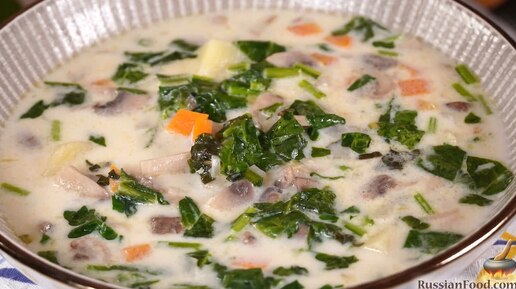 Сливочный, нежный и ароматный. Грибной суп со шпинатом и сливками
