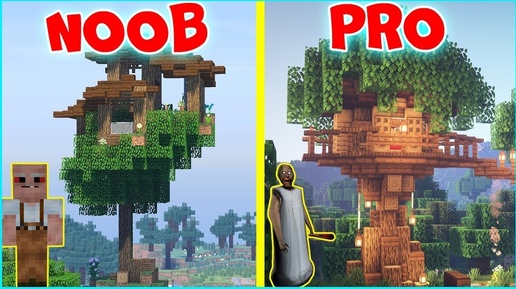 БАБКА ГРЕННИ И GRANDPA ПОСТРОИЛИ ДОМ НА ДЕРЕВЕ НУБА И ПРО В МАЙНКРАФТ НУБИК В MINECRAFT GRANNY
