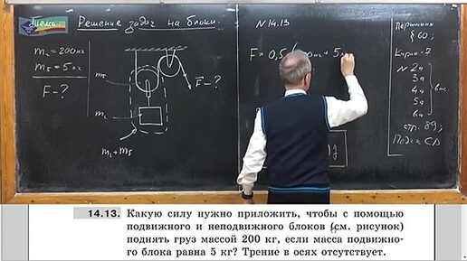Задача на определение силы необходимой для поднятия грузов с помощью системы подвижного и не подвижного блоков