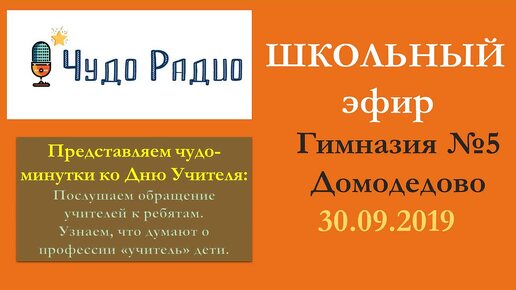 Чудо Радио Эфиры Гимназия №5 - Выпуск-3 (30.09.2019)