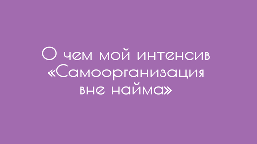 О чем мой интенсив «Самоорганизация вне найма»