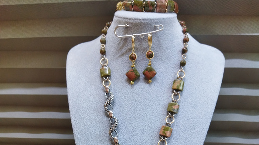Украшения для сестрёнки Олечки. Часть 2. Два комплекта из унакита:"Луговая змейка " и пока безымянный.