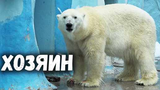 Белый медведь Кай хозяйничает в вольере. Новосибирский зоопарк