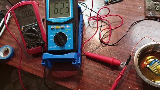 Замер сопротивления изоляции машинного масла мегером с алюминиевыми электродами при 500 вольт