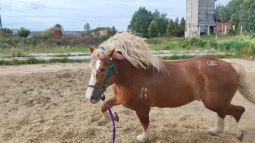 Объездка богатырского коня! Скоро будет бегать под седлом. А пока корда - второй раз. Георг - русский тяжеловоз.