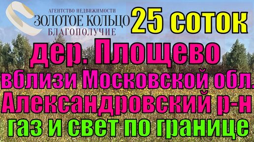 Отличный земельный участок 25 соток в д. Площево Александровский р-н Владимирской обл. Газ. Свет.