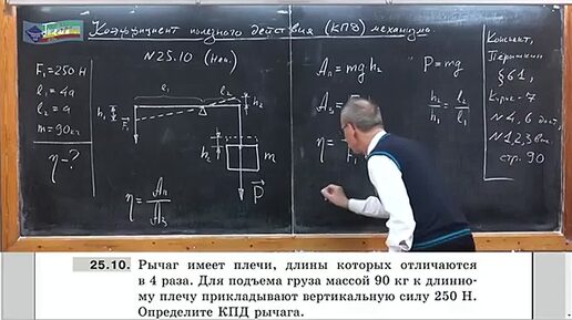 Задача на определение КПД рычага с длинным плечом поднимающий груз