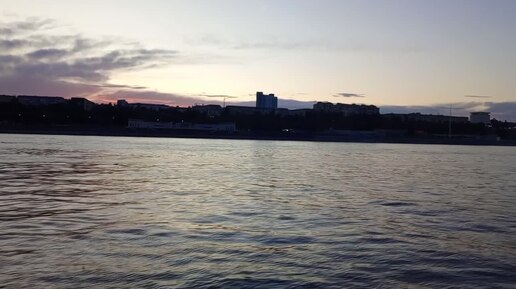 Идём по Волге в Волгограде в сгущающихся сумерках