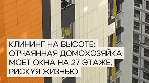Бесстрашная домохозяйка мыла окна на 27 этаже.