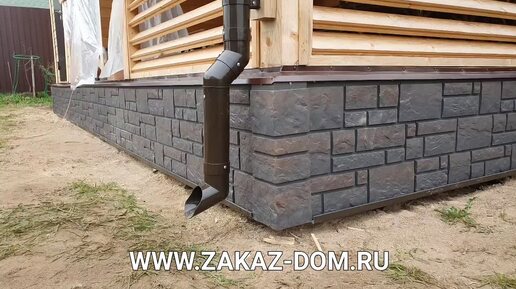 Заказ-Дом фасадная облицовка цоколя фундамента: выполнен монтаж каркаса фасадными панелями Dockе для наружной отделки, устанавливаем отливы
