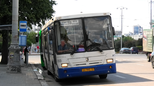 Автобус НефАЗ-5299-20-32 борт. №1053 маршрут №59 на остановке "Площадь Труда" и бегущие пассажиры