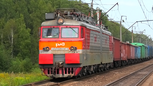 ВЛ11.8-710 с грузовым поездом и приветливой бригадой следует через о.п. 306 км