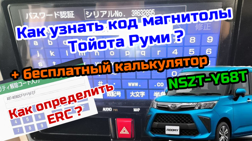 Код магнитолы NSZT-Y68T на #ТОЙОТА РУМИ (#TOYOTA ROOMY) по ERC + БЕСПЛАТНЫЙ КАЛЬКУЛЯТОР. Разблокировка японской магнитолы.