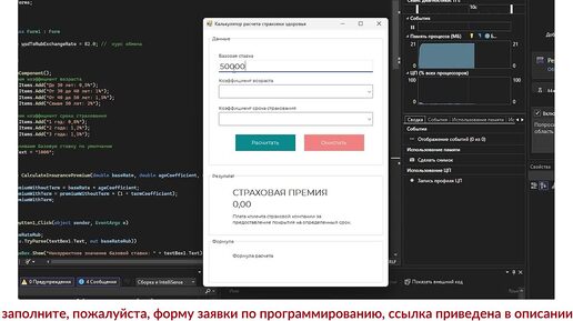 Разработка калькулятора для расчёта страховки. Программа на Visual C# .NET 2019. Курсовая работа по программированию