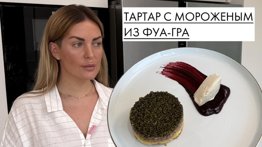 Тартар с черной икрой на бриоши с мороженым из фуа-гра на ягодной подложке