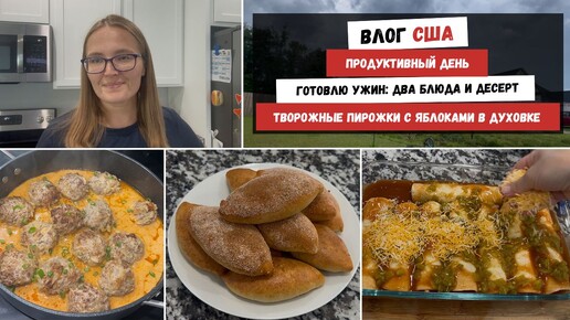 Продуктивный День | Готовлю Ужин: два Блюда и Десерт | Творожные Пирожки с Яблоками в Духовке