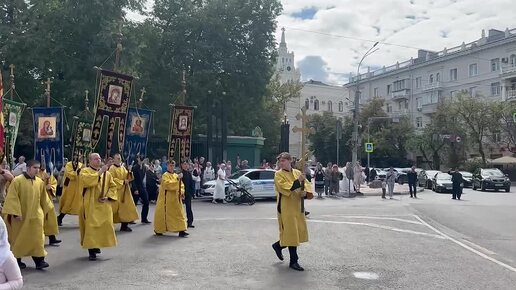 Перекрыты дороги, дежурит полиция: масштабный крестный ход сняли на видео в Воронеже