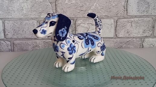 Валяная собака Такса с рисунком под Гжель