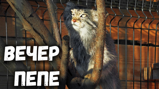 Манул Пепе на закате выбрала удобное место для отдыха. Барнаульский зоопарк