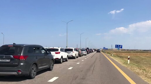 Гигантская пробка перед Крымским мостом на выезд из Крыма! За неделю еду третий раз и наблюдаю такую картину! Время ожидания 5-6 час.!