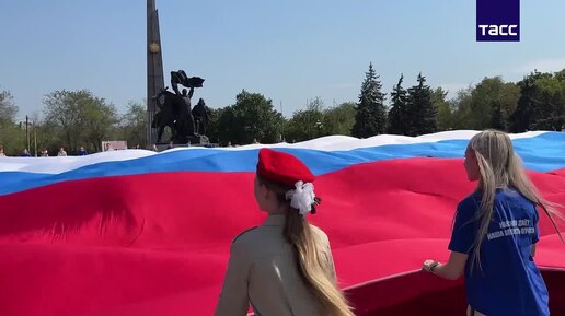 В ЛНР развернули один из самых больших флагов РФ площадью 2,4 тыс. кв. м
