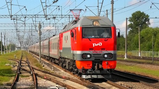ЭП2К-216 со скорым поездом Санкт-Петербург — Оренбург и приветливым помощником