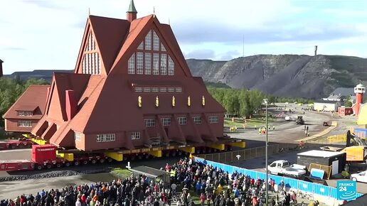 Церковь весом 672 тонны переезжает на новое место. Швеция, город Кируна, август 2025