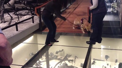 Собаке впервые в жизни пришлось идти по стеклянному полу – видео ее реакции