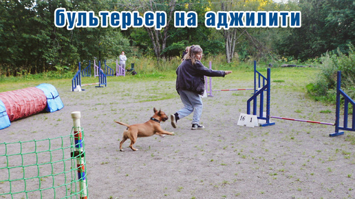 Минибультерьер Данчик на аджилити.