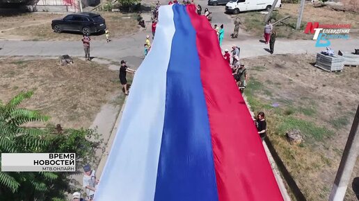 В День флага России в Запорожье волгоградцы развернули 100-метровый триколор