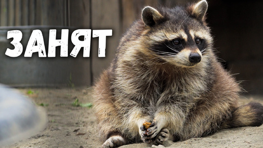 Енот что-то с аппетитом грызет. Барнаульский зоопарк