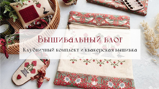 14. Вышивальный влог за август. Клубничные аксессуары для вышивки, квакерские семплеры, велопрогулки