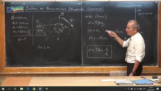 Задача на определение скорости зубьев циркулярной пилы приводимой в движение электродвигателем через шкив