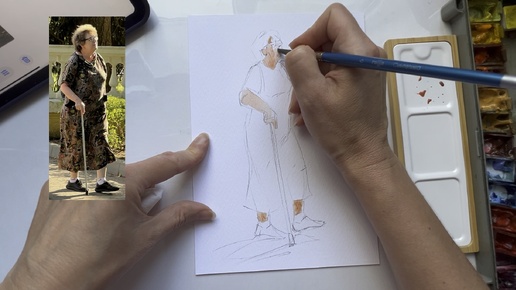 Пожилая дама с палкой