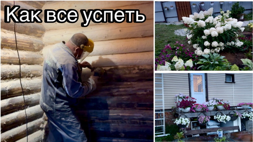 Начали шкурить баню внутри. Мой цветник за год каким стал