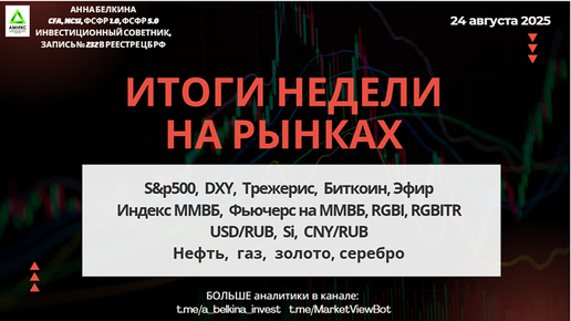 Итоги недели – 24 августа 2025 #SP500 #DXY #RGBI #MICEX #IRUS #USDRUB #Brent #Gas #Gold #BTC #ETH