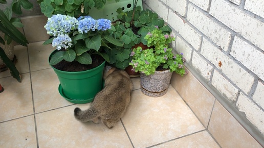 Кот Маню и кошки пришли проверять правильно ли был пересажен цветок 🌱🌸🌸🌸