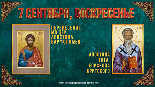 Перенесение мощей ап. Варфоломея. Ап. Тита, епископа Критского. 7 сентября 2025 г. Календарь (видео)
