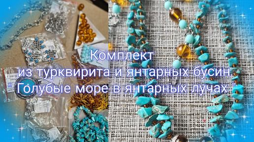 Мои работы#104. Комплект из турквенита и янтарных бусин " Голубое море в янтарных лучах"