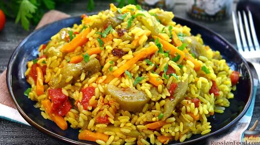 Плов по-летнему. Рис с баклажанами (на сковороде)