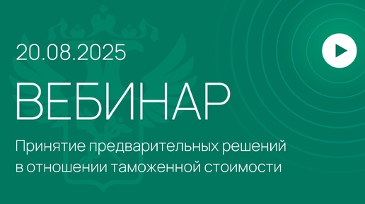 Вебинар на тему «Принятие предварительных решений в отношении таможенной стоимости»