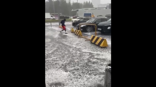 Сильный град и ливень накрыли Приморский район Петербурга: на улицах буквально сугробы