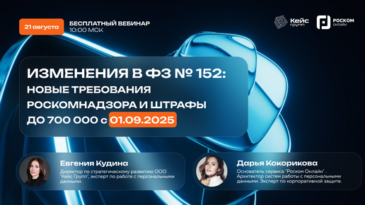 ПЕРСОНАЛЬНЫЕ ДАННЫЕ С 1 СЕНТЯБРЯ 2025: ВЕБИНАР О НОВЫХ ТРЕБОВАНИЯХ РОСКОМНАДЗОРА С 01.09.2025