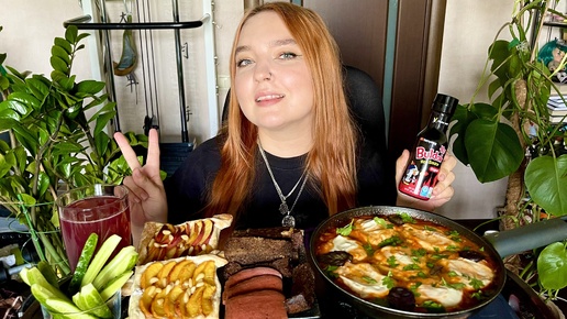 МУКБАНГ | Шакшука, слойки с нектарином, компот 🍑