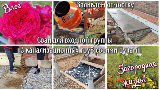 Заливаем отмостку. Сваи для входной группы из канализационных труб своими руками. ЗАГОРОДНАЯ ЖИЗНЬ 🏠