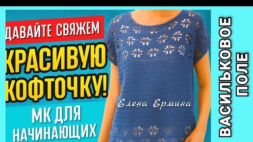 🔴 Давайте СВЯЖЕМ красивую КОФТОЧКУ / топ, футболку крючком "ВАСИЛЬКОВОЕ ПОЛЕ" (МК для начинающих)