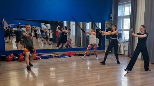 Отработка новичками ударов японским мечом катана по рукам маэ котэ ути в школе кендзюцу Katana Club