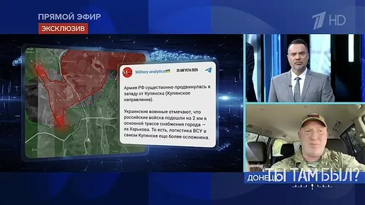 Фрагмент включения в прямой эфир Первого канал в программе «Время покажет».