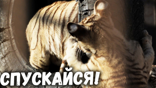 Бенгальский тигренок забрался в покрышку, а братья пытаются выгнать его оттуда. Барнаульский зоопарк
